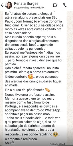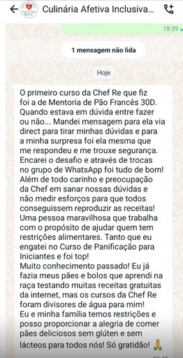 Essa vivência traz para o curso uma perspectiva única: aulas com uma professora que vive a realidade da retirada do glúten diariamente.
